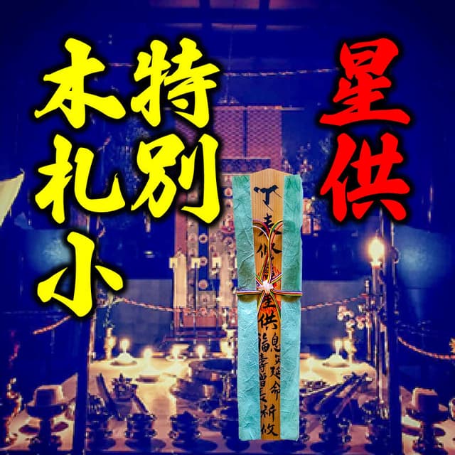 阿波和紙・金文字の特別木札(60cm)、カード御札、14座での祈願読み上げセットです。星供期間中の祈願は、最終日(立春節分)以外は黙読或いはお名前と四文字の願いごとを読み上げます。