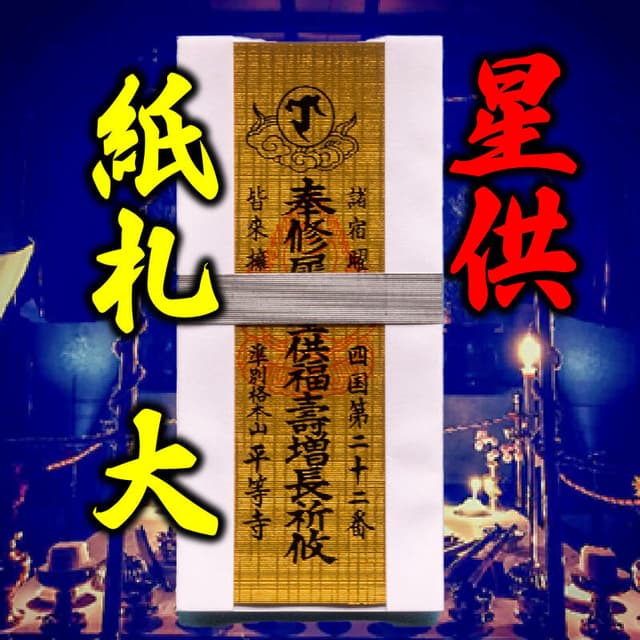 紙札(大・17cm)、カード御札、14座での祈願読み上げセットです。星供期間中の祈願は、最終日(立春節分)以外は黙読或いはお名前と四文字の願いごとを読み上げます。