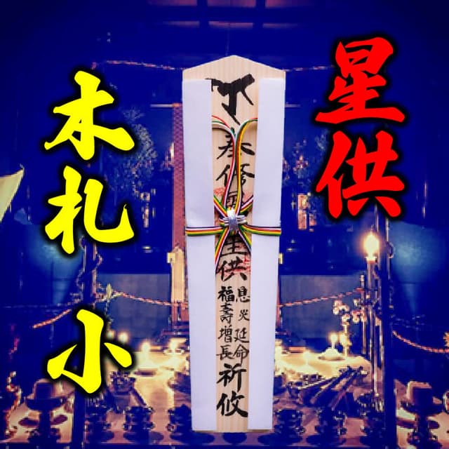 木札(小、24cm)、カード御札、14座での祈願読み上げセットです。星供期間中の祈願は、最終日(立春節分)以外は黙読或いはお名前と四文字の願いごとを読み上げます。