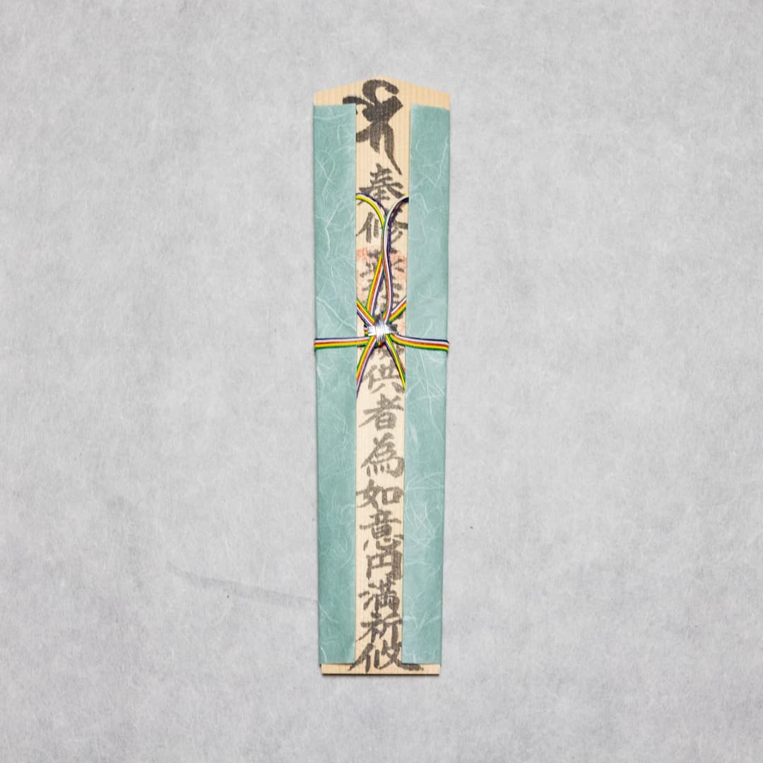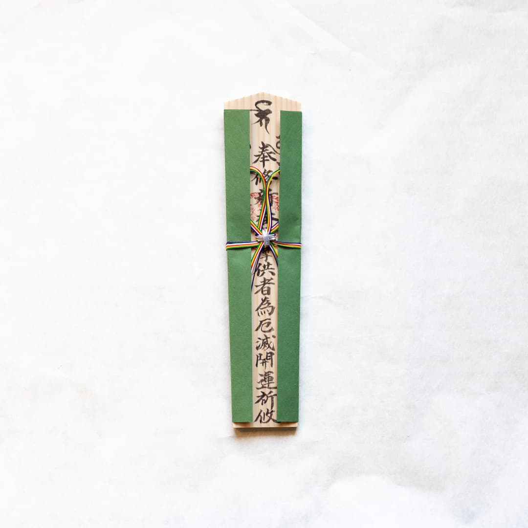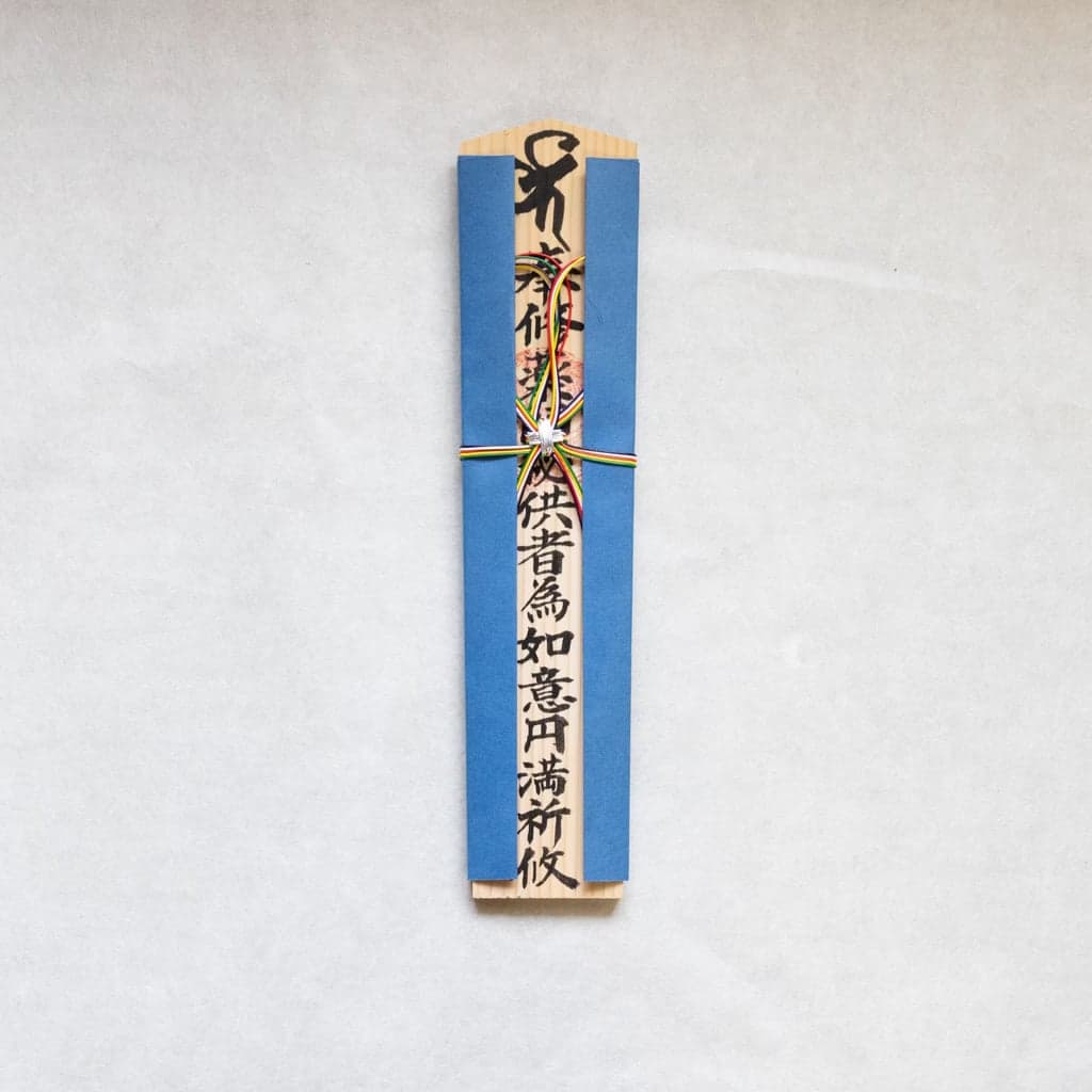 木札の袴には、徳島の伝統工芸品である阿波和紙を使用しています。 その色は全22色。金・銀・檜皮色・香色など、一つひとつ丁寧に選び抜いた美しい色合いをご用意しました。 また、カードお札のデザインは住職がすべて手がけています。