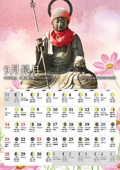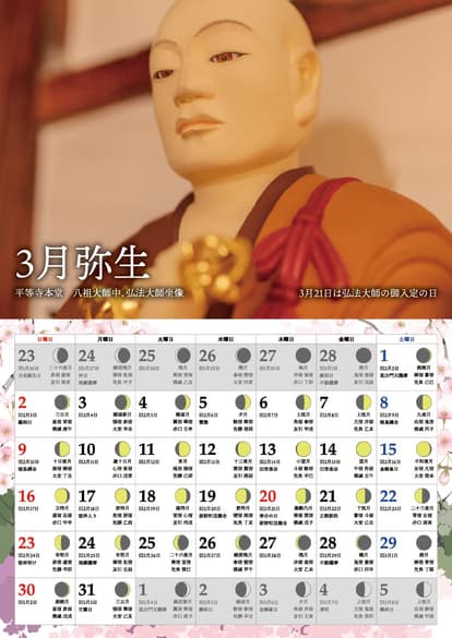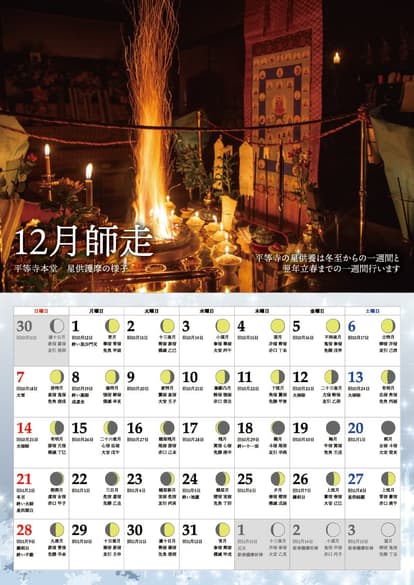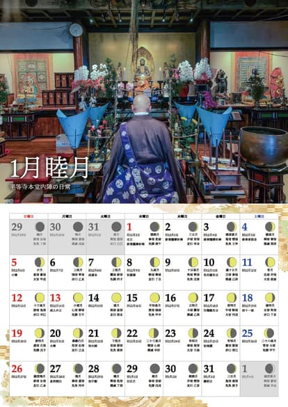 平等寺の仏さまの写真を添えた令和7年のオリジナルカレンダーを制作しました。